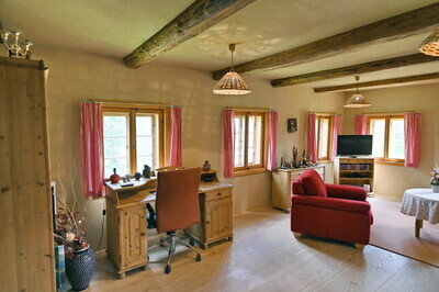 Tafel mit max. 14 Plätzen und Hausbibliothek mit religiöser und regionaler Literatur