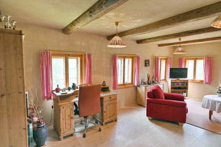 Unsere Herberge kann bis zu zehn Pilger aufnehmen. Der gemeinsame Aufenthaltsbereich befindet sich im Erdgeschoss. Im Obergeschoss können Sie zwischen verschiedenen Zimmergrößen wählen. Alle Zimmer sind einfach möbliert. Massivholz harmoniert mit lehmverputzten Wänden.