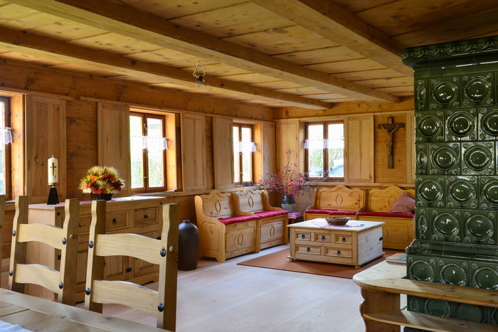 Da wäre einiges zu nennen. So ist es gelungen, den Jugendstil-Kachelofen in der Blockstube zu retten. Er hatte auf verfaultem Untergrund gestanden und zusammenzubrechen gedroht. Das historische Kleinod wurde fachmännisch zerlegt, eingelagert und nach Erneuerung der Blockstube wieder aufgebaut. Jetzt ist er mit einer modernen Brandfeuerung und elektronischer Zuluftregelung ausgestattet. Eine Augenweide ist die komplett neue Dielung mit langen, 40 Zentimeter breiten und verdeckt geschraubten Brettern aus Douglasie. Sie prägt maßgeblich das natürliche Erscheinungsbild im Haus. Weitere schöne Details: Die Holztreppen ins Ober- und Dachgeschoss sind nach historischem Vorbild gefertigt worden. Auch der Lehmverputz in mehreren Naturfarbtonen gibt dem Pilgerhäusl gegenüber anderen Gebäuden etwas Besonderes. Verwendet wurden originale Naturerden ohne Farbzusätze.