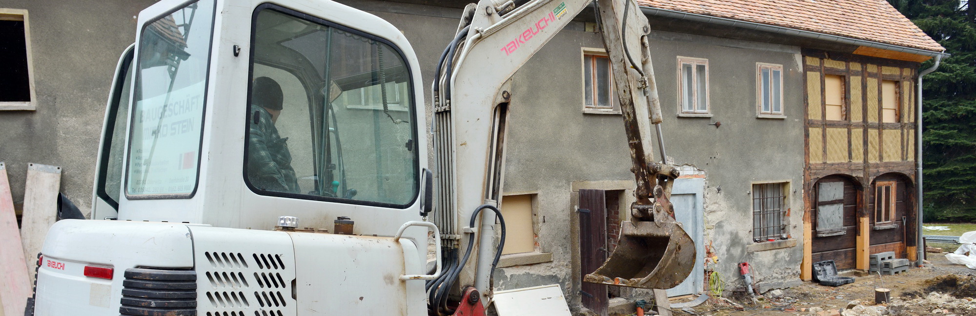 Baustart ist am 20. Oktober 2010. Die Bürger von Hirschfelde und Umgebung – insbesondere aus der katholischen und evangelischen Gemeinde – nehmen das Motto auf dem Grundstein ernst. Ein Ehrenamttrupp hat sich gebildet. Er befreit das Haus zunächst von unnötigem Ballast, um den historischen Kernbestand freizulegen. Die Helfer tragen alte Putze ab, entfernen schadhafte Fußböden und nachträgliche Verkleidungen. Mit den Abbrucharbeiten schaffen sie bis ins neue Jahr hinein Baufreiheit für die Fachfirmen. 14 Kubikmeter Schutt kommen zusammen.